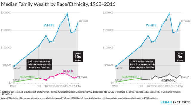 The article Kenny links to contains no link to the original study, so it takes some work to fact-check his claim. Before doing so, it’s worth noting the broader context of American universities and racism: “According to the surviving records, the first enslaved African in Massachusetts was the property of the schoolmaster of Harvard. Yale funded its first graduate-level courses and its first scholarship with the rents from a small slave plantation it owned in Rhode Island .” Alex Carp continues: “At its best, this wave of research demonstrates the ways in which slavery and its legacies have built the world we live in: how the ideas and institutions born in one era do not entirely cast off the forces that shaped them as they move through time.” As the charts about the wealth gap show, the ongoing of legacy slavery and the current practices of redlining perpetuate structural racism: “individual choices are not sufficient to erase a century of accumulated wealth: structural racism trumps personal responsibility.” When people deny white privilege, it’s the ultimate identity politics of white supremacy at play.