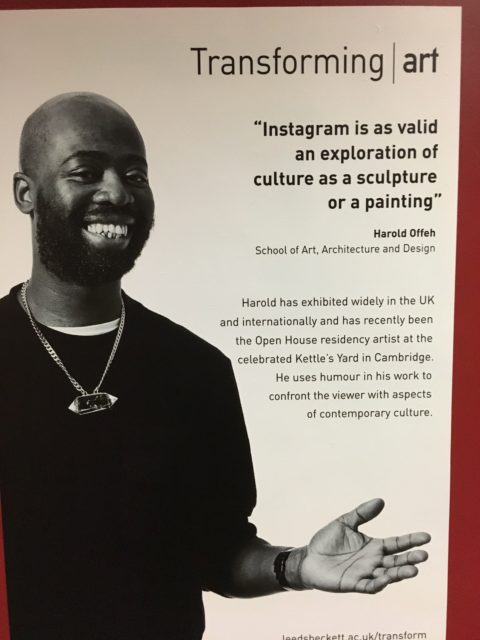 While I was preparing to give my workshop on Media Literacy in a Time of Polarization and Propaganda, I saw this poster in the hallway, featuring Harold Offeh, of the School of Art, Architecture and Design, who says âInstagram is as valid an exploration of culture as sculpture or painting.â